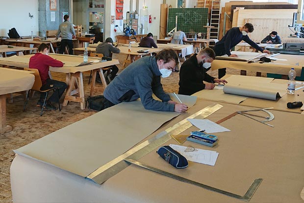 Regelmäßig lüften, Maschinen desinfizieren, Gruppenarbeiten fallen aus – pandemiebedingt gelten am Bildungszentrum der Handwerkskammer Mittelfranken in Ansbach besondere Regeln für die Zimmerer-Azubis. Hier erzählt Zimmermeister und ÜBA-Ausbilder Stefan Schneider, wie der Ausbildungsalltag aussieht und was er in diesen Zeiten vermisst.